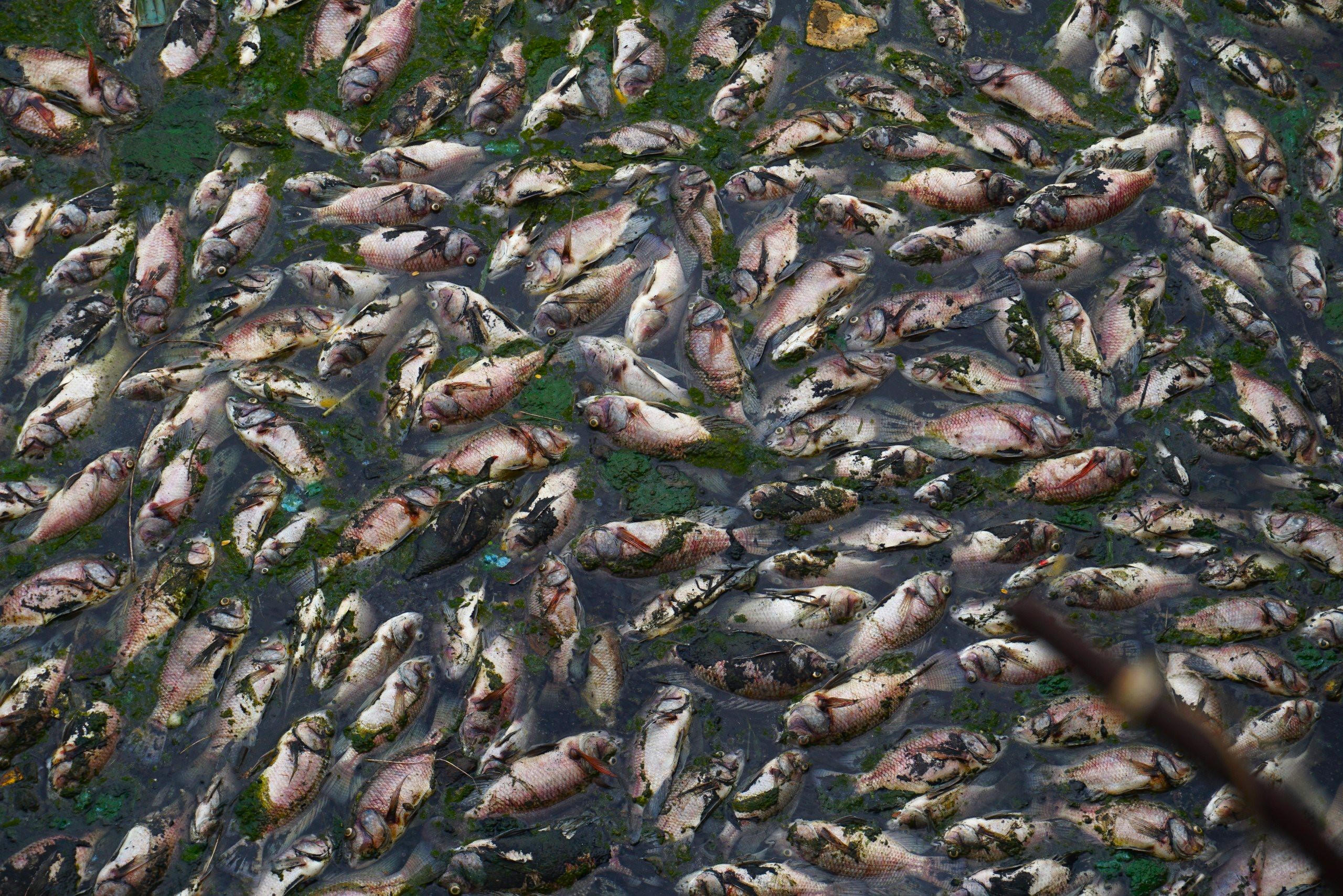 Sau trận mưa lớn, hàng tấn cá chết nổi trắng kênh Đa Cô, bốc mùi nồng nặc khiến người dân địa phương than trời. |
