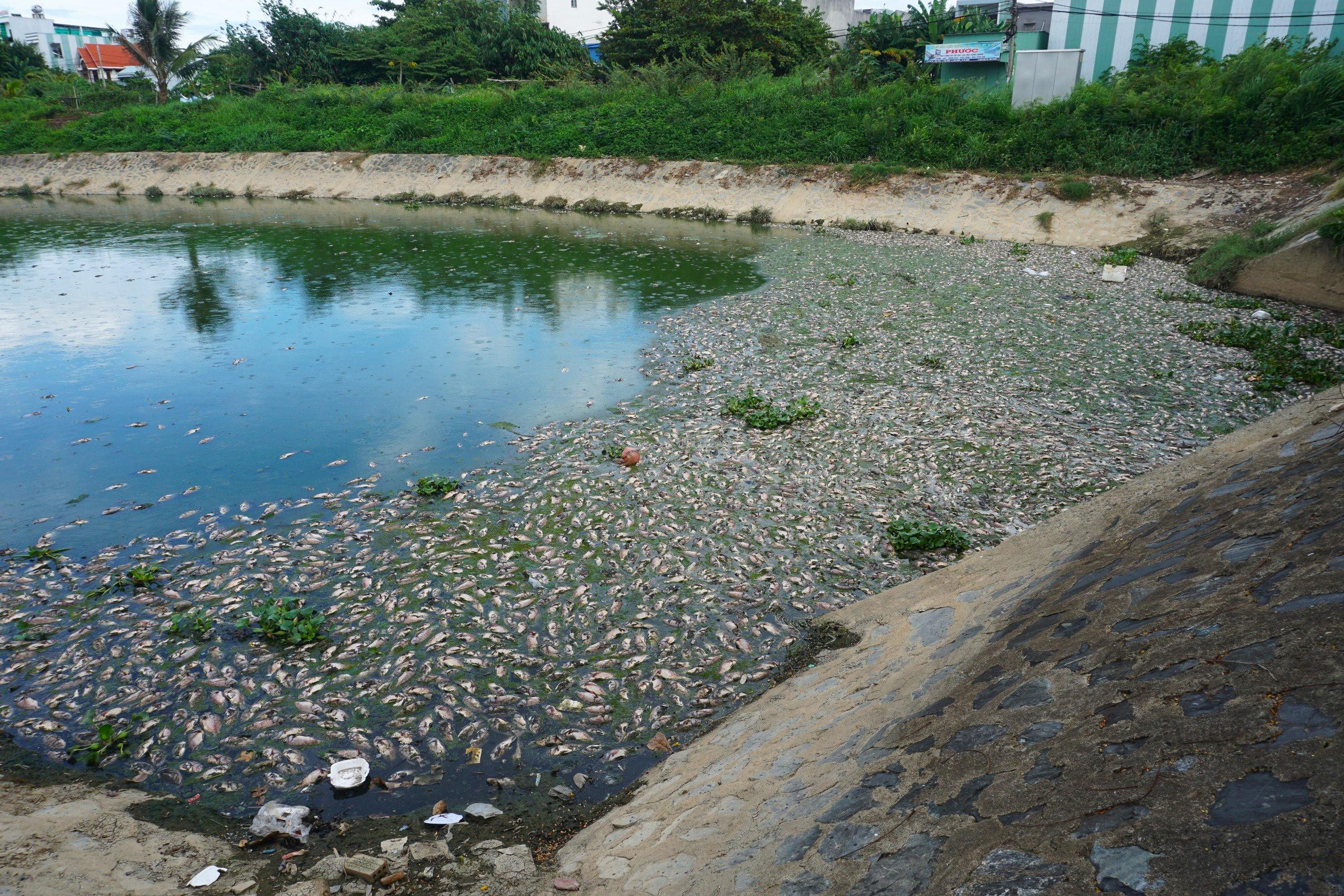 Hàng tấn cá chết nổi trắng kênh Đa Cô ở Đà Nẵng