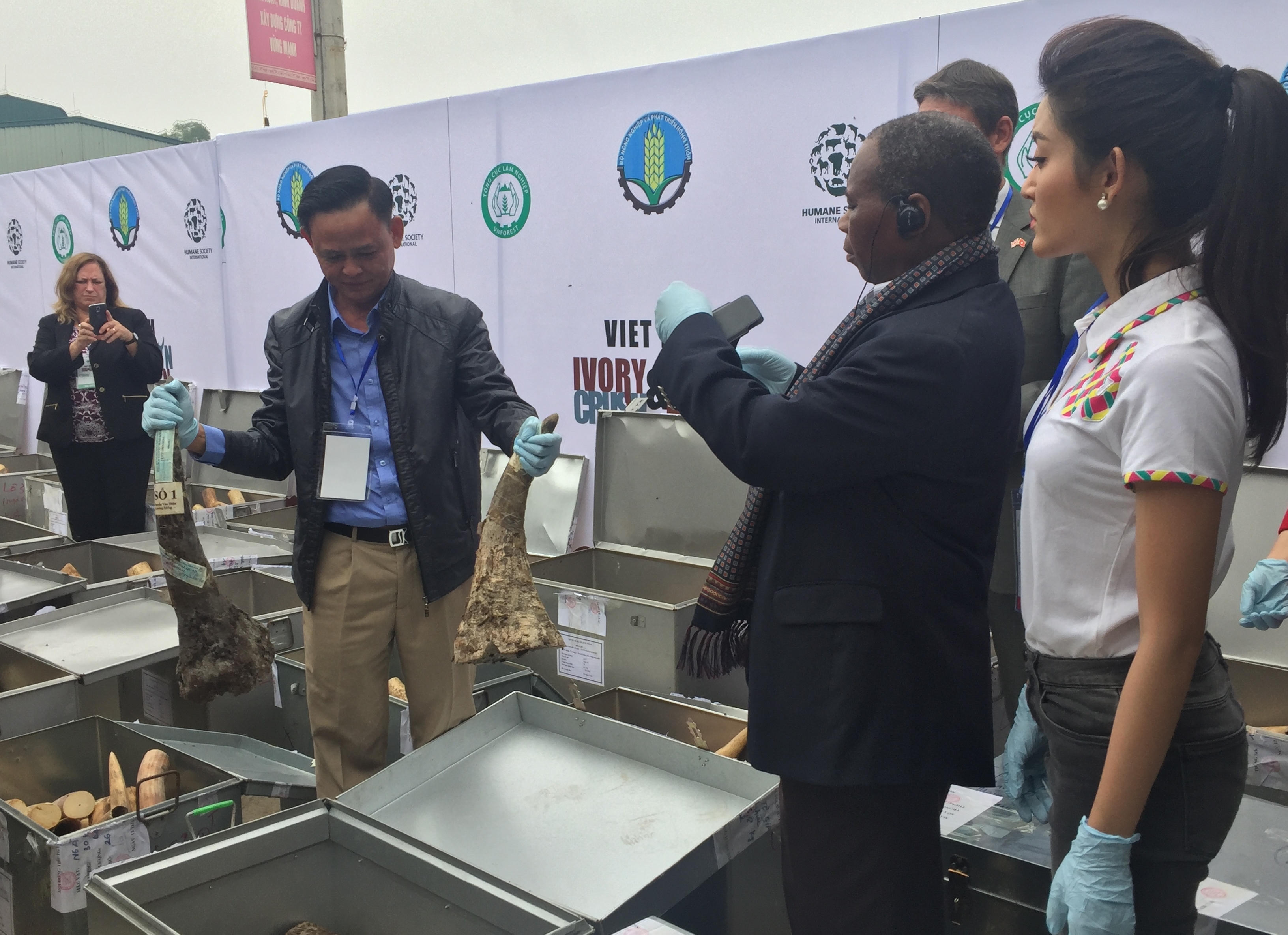 Tới dự buổi tiêu hủy có Đại sứ Vương quốc Anh, Đại sứ Cộng Hòa Mozambiqu và có sự xuất hiện của Á hậu Việt Nam 2014 Huyền My.