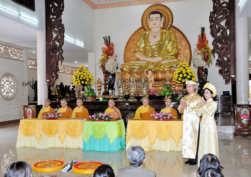 (PLO) - Những năm gần đây, việc các đôi uyên ương tới chùa tổ chức đám cưới đã không còn quá xa lạ, trong đó có không ít nghệ sỹ, ca sỹ như: Đăng Khôi, Thủy Tiên, ca nương Kiều Anh... Nghi lễ này được các Phật tử gọi là Hằng thuận.