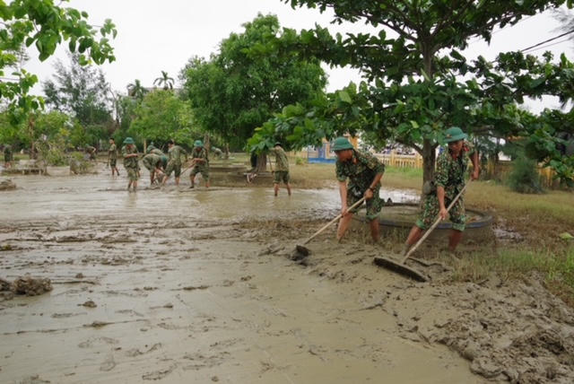 Ngay khi đến địa bàn huyện Quảng Điền, Phong Điền, Thị xã Hương Thủy, Hương Trà, cán bộ, chiến sĩ nhanh chóng đến những nơi nước rút để giúp địa phương dọn dẹp các trục đường liên thôn, liên xã, trường học, trạm xá, bệnh viện, nghĩa trang liệt sĩ, gia đình chính sách, khơi thông cống rãnh, gia cố các tuyến đê bị sạt lở, dựng, sửa chữa lại các ngôi nhà bị tốc mái, xiêu vẹo….