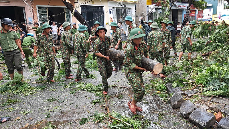 Hơn 600 cán bộ, chiến sĩ Bộ đội thường trực và hơn 3.000 Dân quân tự vệ đã được huy động để tham gia cùng với các địa phương khắc phục hậu quả sau bão. Trong đó tập trung ưu tiên khắc phục nhà cửa cho các gia đình bị thiệt hại nặng, gia đình có hoàn cảnh khó khăn, neo đơn và gia đình chính sách với phương châm không để bà con nhân dân phải sống cảnh màn trời, chiếu đất.
