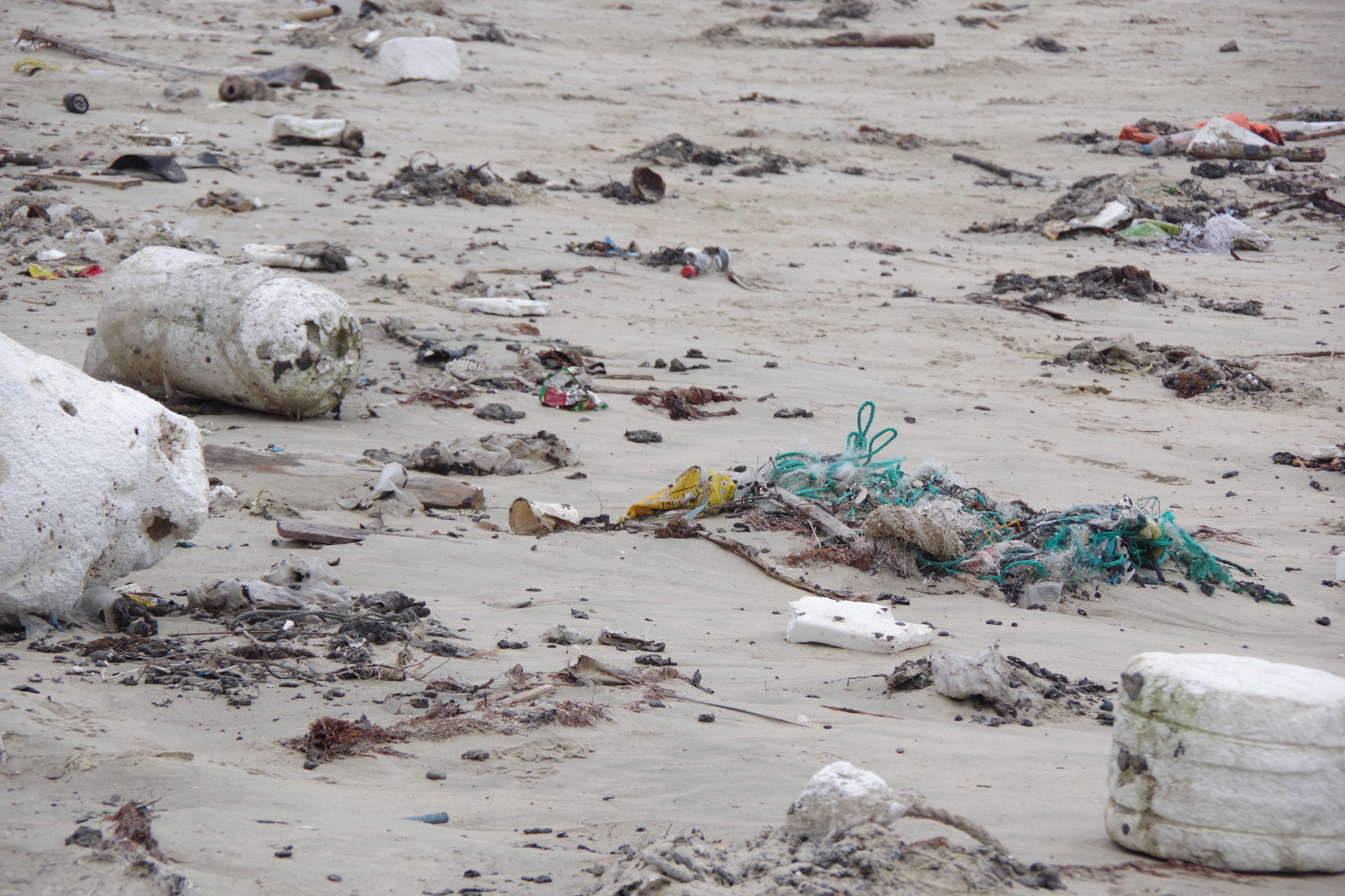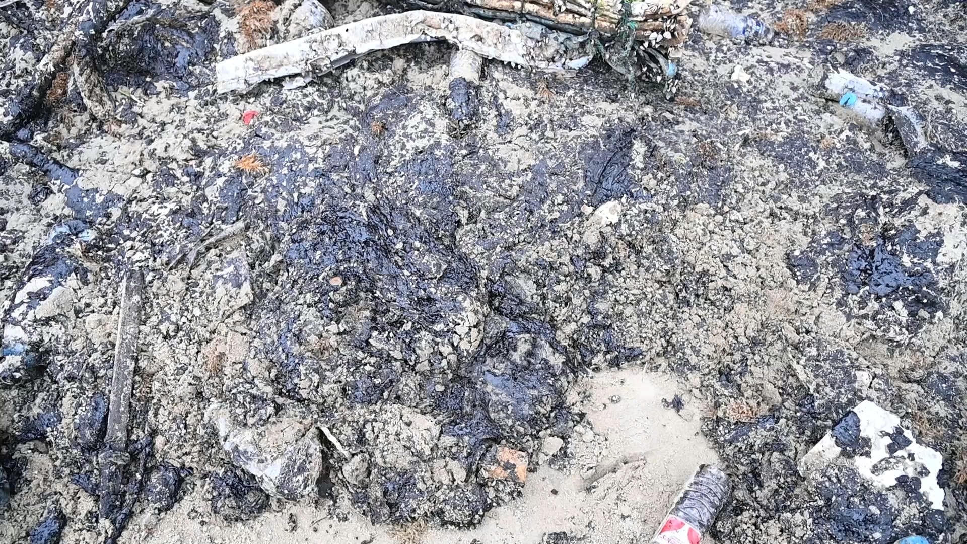 Dầu vón cục và rác thải trôi dạt vào phủ kín dọc bờ biển. |