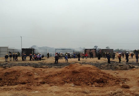 Một số người chứng kiến sự việc cho biết, khi thấy một nhóm bảo vệ đánh một công nhân, quá bức xúc với hành động này nên hàng trăm công nhân đã nhảy vào xô xát với lực lượng bảo vệ nơi đây. Quá khích hơn, phía công nhân đã phóng hoả 3 gian nhà của lực lượng bảo vệ cùng với hàng chục chiếc xe máy tại đây.
