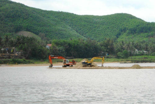 | Hoạt động khai thác cát tràn lan làm thay đổi dòng chảy sông Lại Giang khiến tình trạng sạt lở bờ sông càng nghiêm trọng |