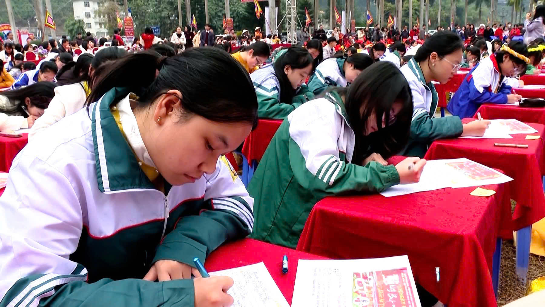 Hàng trăm học sinh Lào Cai hào hứng tham gia Khai bút đầu xuân Ất Tỵ 2025