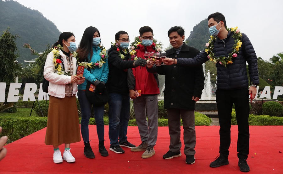 Do ảnh hưởng của dịch bệnh Covid-19 nên lượng khách quốc tế đến với Phong Nha – Kẻ Bàng trong ngày đầu năm mới cũng ít hơn so với mọi năm. Anh Pi Sang Jin và 3 người bạn của mình là những vị khách quốc tế đầu tiên đến với Di sản thiên nhiên thế giới Phong Nha - Kẻ Bàng năm 2021. Những vị khách Hàn Quốc này đang làm việc tại Việt Nam.