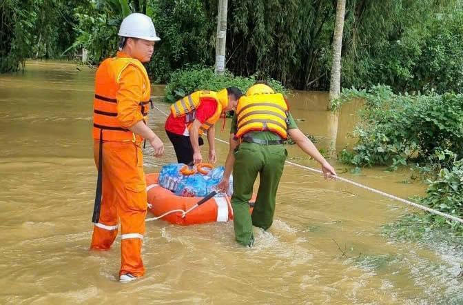Lực lượng chức năng tỉnh Cao Bằng hỗ trợ người dân và tài sản ra khỏi khu vực nguy hiểm đến nơi an toàn.