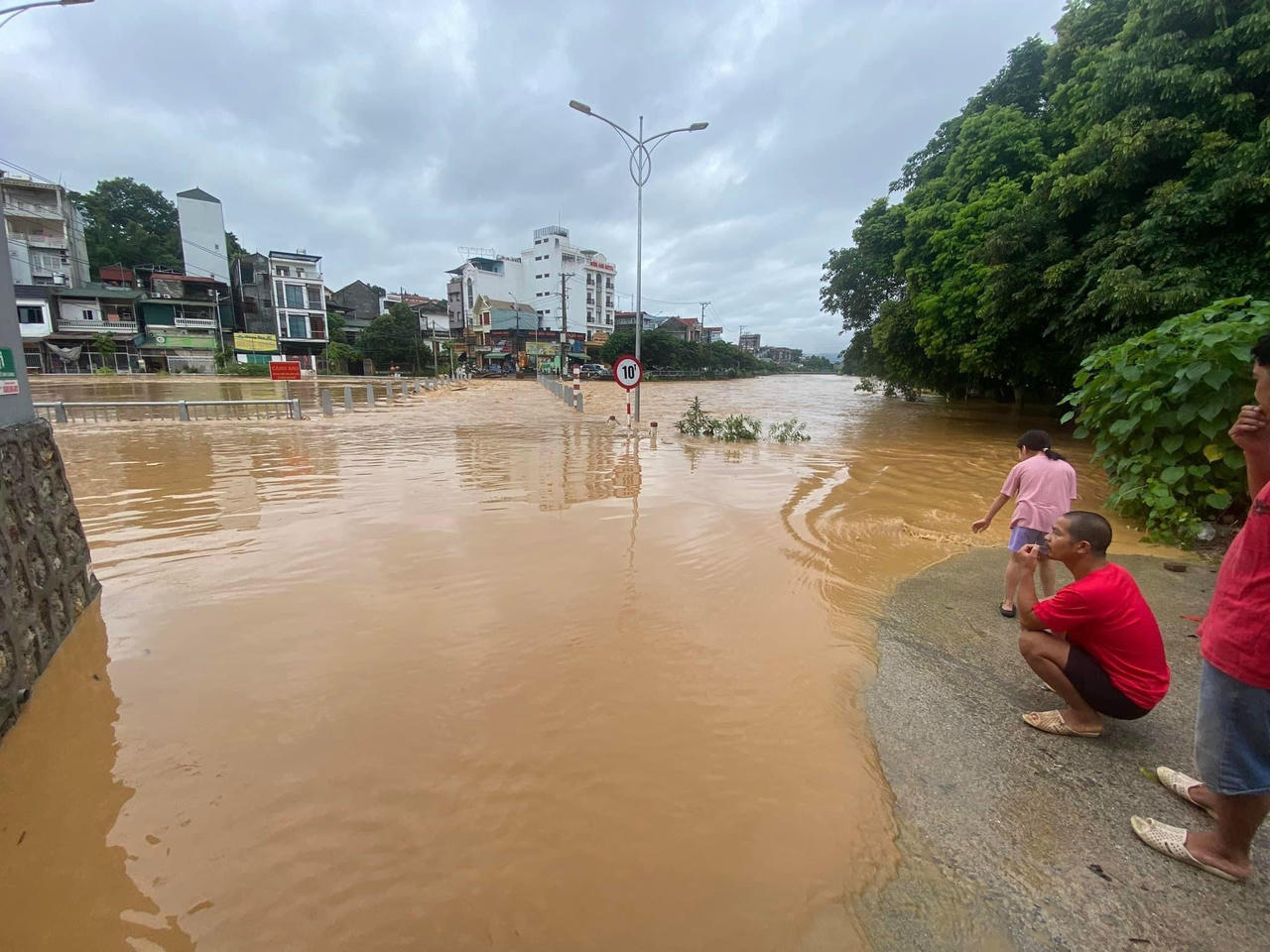 Nhiều khu vực tại thành phố Cao Bằng ngập trong lũ lớn do lũ trên sông Bằng và sông Hiến lên cao