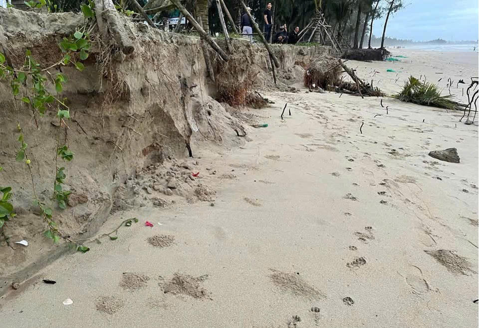 “Hiện nay tình trạng xâm thực ở đây rất nghiêm trọng với chiều dài hơn 700m, lấn sâu vào khoảng 15m. Hàng dừa và dương liễu bị sóng đánh bật gốc, hư hại, ảnh hưởng cảnh quan và đời sống người dân”, ông Lâm nói.