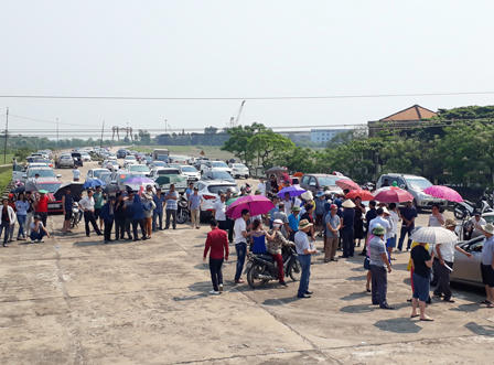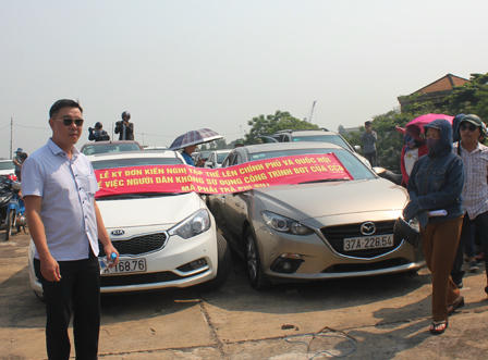 Hàng trăm người dân cùng khoảng hơn 100 xe ô tô các loại được người dân sử dụng để đến điểm kí đơn tập thể gửi các ngành chức năng.