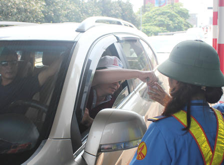 Sau khi ký đơn kiến nghị, người dân huyện Nghi Xuân lại điều khiển phương tiện qua cầu Bến Thủy 1 sang TP.Vinh và tiếp tục sử dụng tiền mệnh giá nhỏ để mua vé qua cầu.