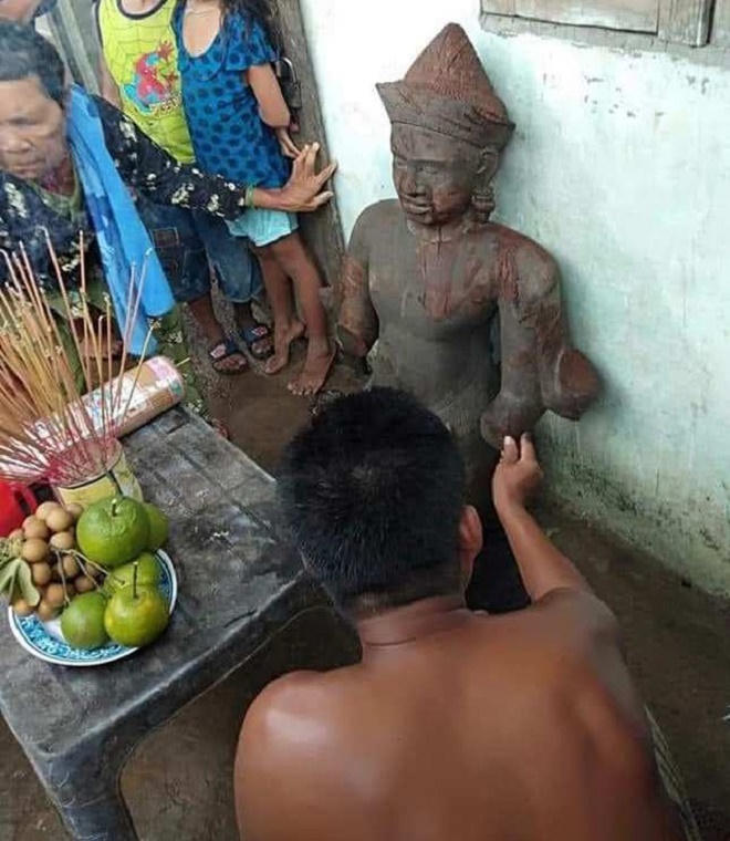 Hàng trăm người dân ở Sóc Trăng đã đến chùa Bốn Mặt (xã Phú Tân, huyện Châu Thành, tỉnh Sóc Trăng) để ngắm nhìn và chụp ảnh bức tượng màu đen xám, bằng đá. Nhiều người còn thắp hương, quỳ lạy trước bức tượng.
