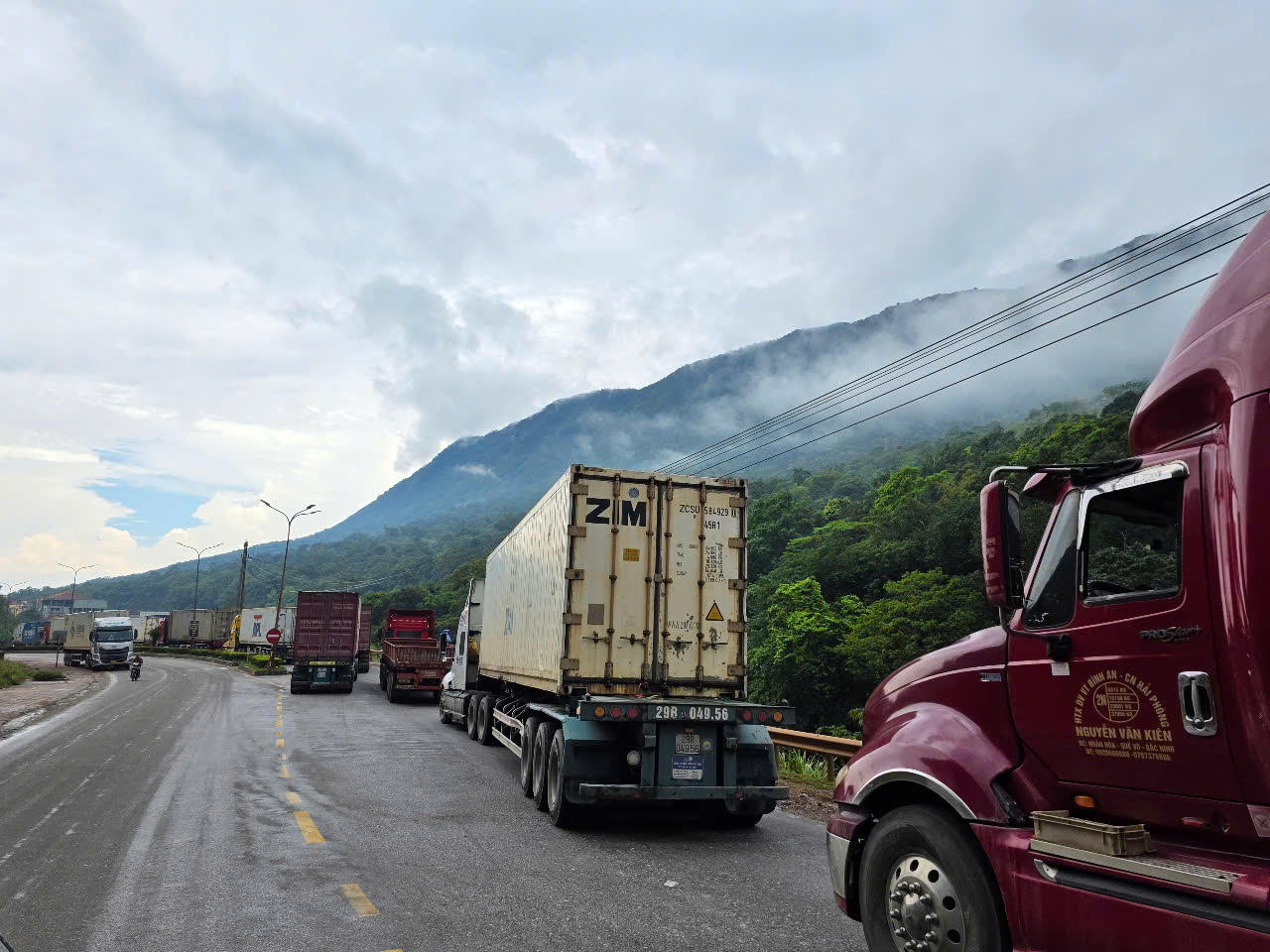 Tình trạng ùn tắc xảy ra khoảng sáng 14/5 trên Quốc lộ 12A, tại đoạn đường nối từ Cửa khẩu quốc tế Cha Lo (xã Dân Hóa, huyện Minh Hóa, Quảng Bình) đến đoạn Cửa khẩu Naphao (tỉnh Khăm Muồn, Lào) có chiều dài khoảng 2km.