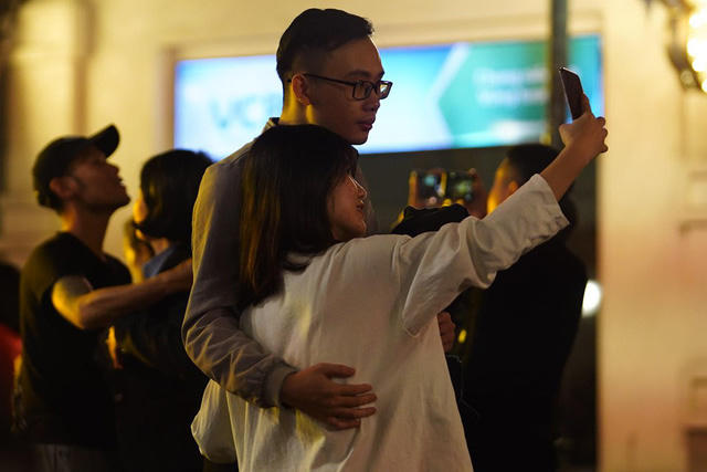 Trong thời khắc này, nhiều cặp tình nhân tranh thủ ghi lại khoảnh khắc của năm cũ và năm mới.