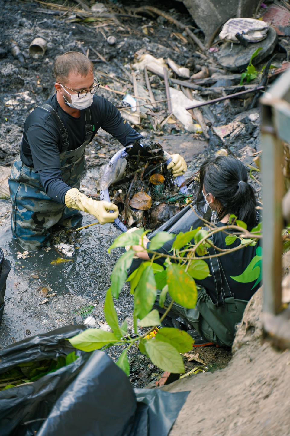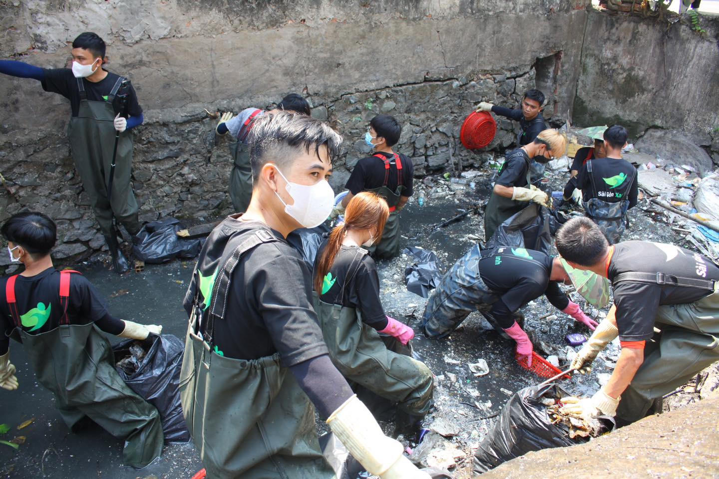Nhóm Sài Gòn Xanh cùng nhau dọn rác, trả lại dòng nước trong xanh cho con kênh, rạch ở TP HCM. Ảnh: SGX. |