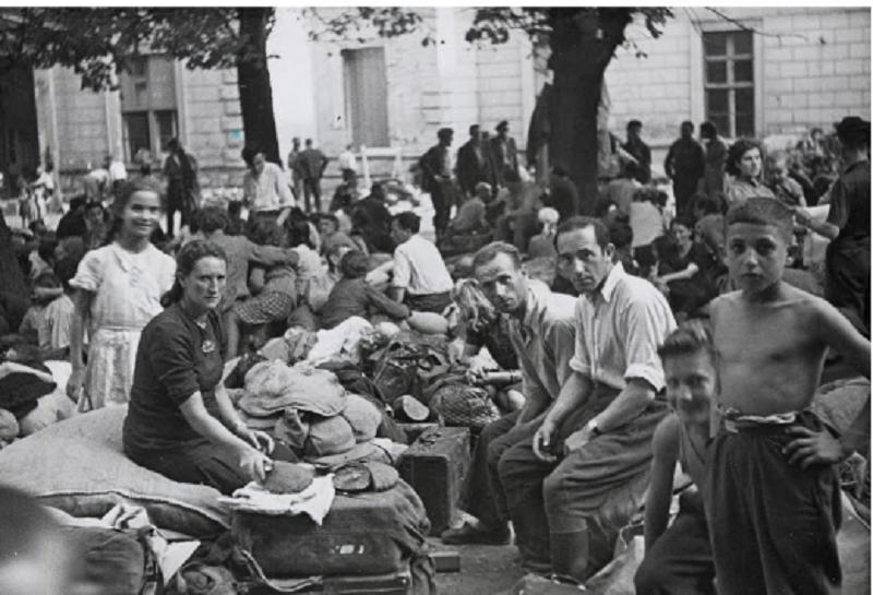 Người tị nạn Do Thái Ba Lan bên ngoài Trung tâm Tiếp nhận Rothschild ở Vienna. |