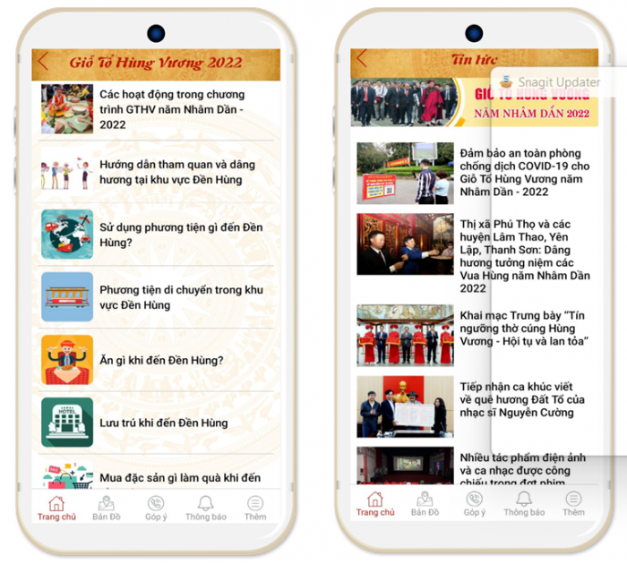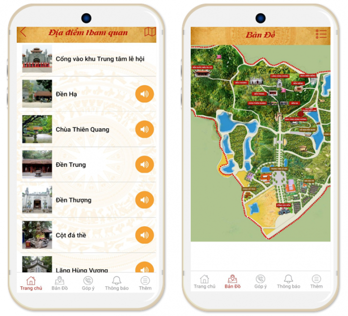 Ứng dụng cũng cung cấp tới du khách bản đồ, vị trí chính xác các địa điểm tham quan tại Khu di tích; nơi diễn ra các hoạt động lễ, hội trong chương trình Giỗ Tổ Hùng Vương năm Nhâm Dần - 2022.