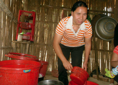 Khi chúng tôi đến thăm, chị Duyên đang lọ mọ chuẩn bị nấu bữa cơm trưa. Trong ngôi nhà tuềnh toàng, trống hoác của cặp vợ chồng mù, không có vật gì đáng giá ngoài mấy bó củi được đặt ngoài cửa.