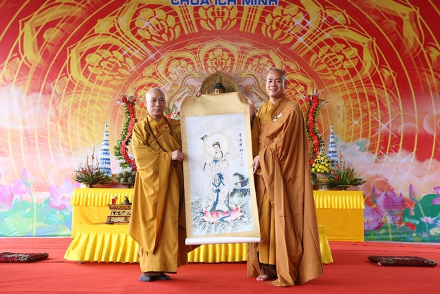 Hòa thượng Thích Bảo Nghiêm đã tán thán công đức của 2 vị đại đức Thích Pháp Tuệ và đại đức Thích Pháp Minh đã dày công gây dựng từ một ngôi chùa Ích Minh lụp xụp, bé nhỏ nằm khiêm tốn trên một thửa đất eo hẹp cạnh khu dân cư nay đã thay da đổi thịt về cơ sở của chùa, từ giảng đường cho tới Chính điện, các công trình, hạng mục và cũng để từ đó khai nhân duyên lên trên đỉnh non nơi đây một đỉnh núi có địa thế đẹp về địa lý, đẹp về cảnh quan và mang đậm chất tố tâm linh rất nhiệm màu.