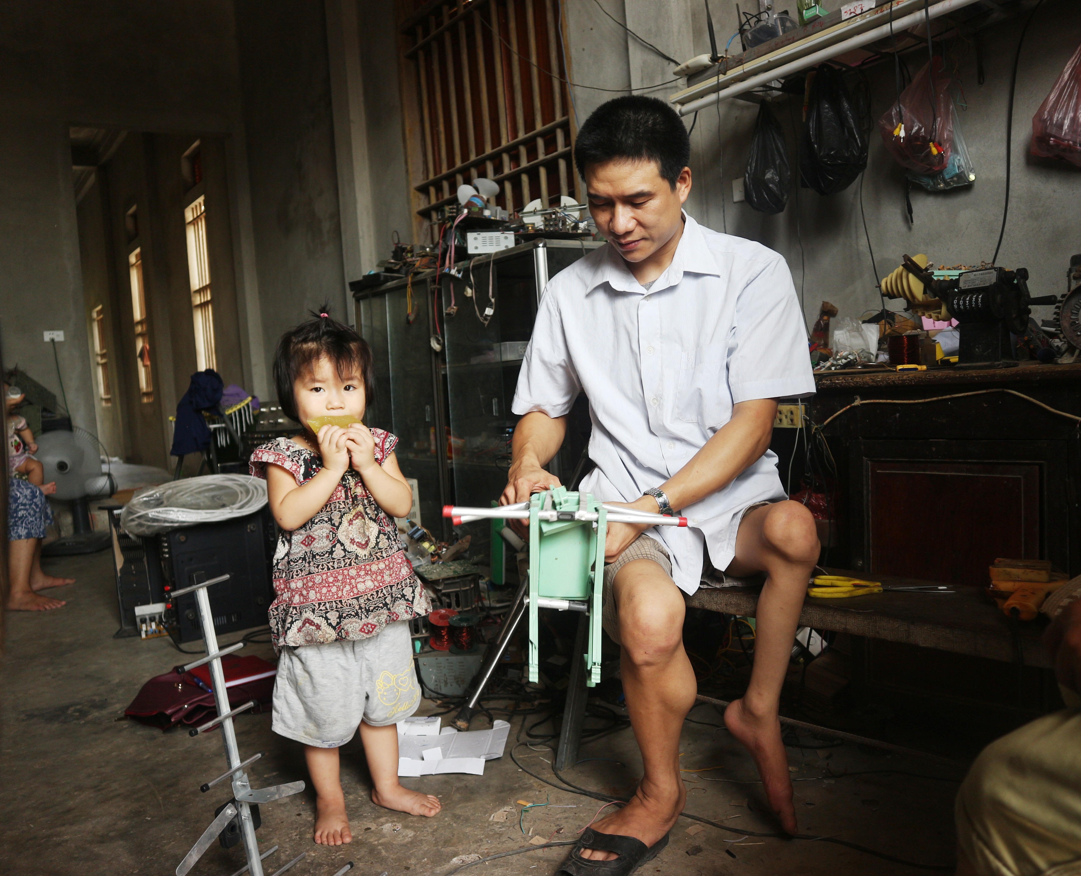 Một ngày đầu tháng 6, trời nắng như đổ lửa, nhưng trong căn nhà cấp 4 ở xã Quỳnh Thanh, huyện Quỳnh Lưu (Nghệ An), anh Hồ Hữu Vinh (SN 1981) vẫn miệt mài với công việc sửa chữa các loại máy móc, đồ điện tử. Hai chân bị teo lại, phải dùng nạng để di chuyển nhưng điều đó không ảnh hưởng mấy đến tốc độ làm việc của anh.