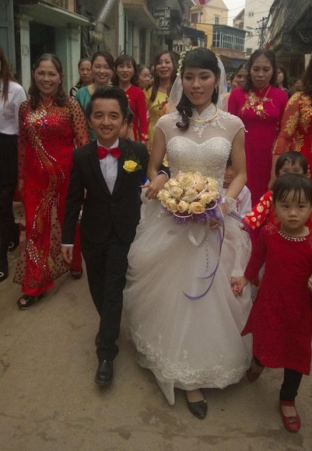 “Lúc mới nghe tin thằng Dũng lấy vợ, ai cũng bất ngờ và buồn cười. Bé tí hạt tiêu như thế mà cũng lấy được vợ. Vợ lại xinh là đằng khác. Thằng bé giỏi thật” - một người thân của chú rể cho hay.