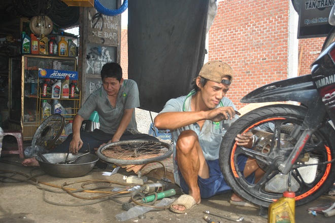 Khi nghề sửa đồng hồ không còn thịnh, anh lại tự tay mày mò và dựng nên tiệm sửa xe đạp, xe gắn máy. Chưa qua một khóa học chỉn chu nào để trang bị kiến thức làm nghề, vậy mà giờ đây anh là một trong những thợ sửa xe có tiếng tại xã biển này.