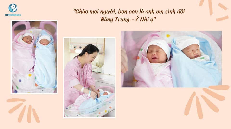 Ngày mổ đẻ, bé trai Đăng Trung ra trước, nặng 2,5kg, bé gái Ý Nhi 2,4kg ra sau. Nghe tiếng khóc đầu đời của cặp song sinh không chỉ gia đình chị Tuyết mà cả đội ngũ bác sĩ của IVF Hồng Ngọc đều vui mừng, hân hoan.
