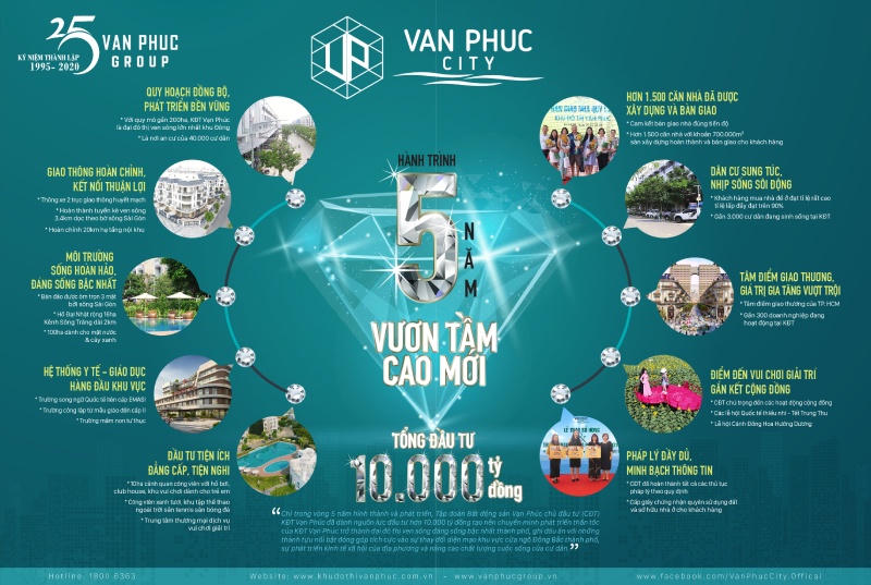 Hành trình 5 năm phát triển của KĐT Vạn Phúc vươn lên thành KĐT sinh thái bậc nhất ven sông, không gian sống lý tưởng tại TP HCM là sự khẳng định về tầm vóc, uy tín và thương hiệu hàng đầu của Tập đoàn Vạn Phúc trong vòng 25 năm vừa qua.
