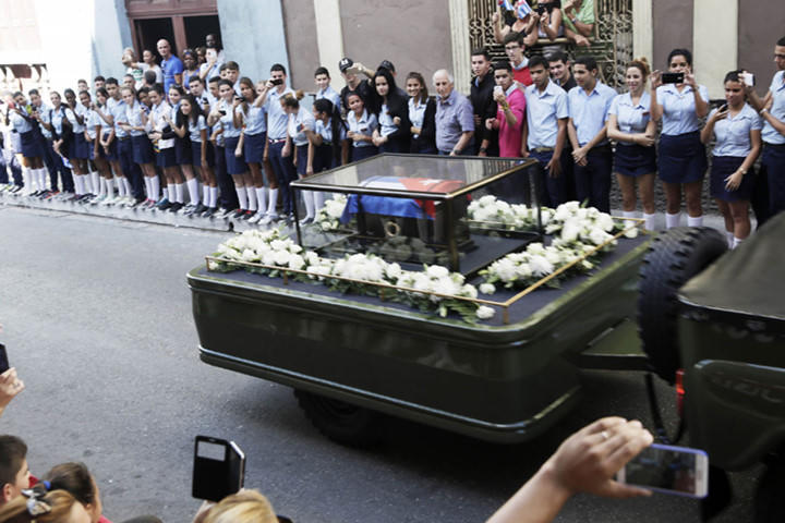 Người dân dùng điện thoại di động ghi lại hình ảnh đoàn xe chở di cốt Fidel. Ảnh: USA Today