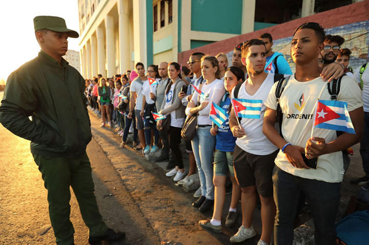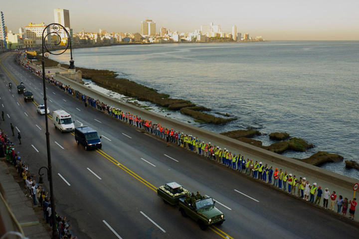 Người dân Cuba xếp hàng bên đường tiễn biệt lãnh tụ Fidel. Ảnh: AP