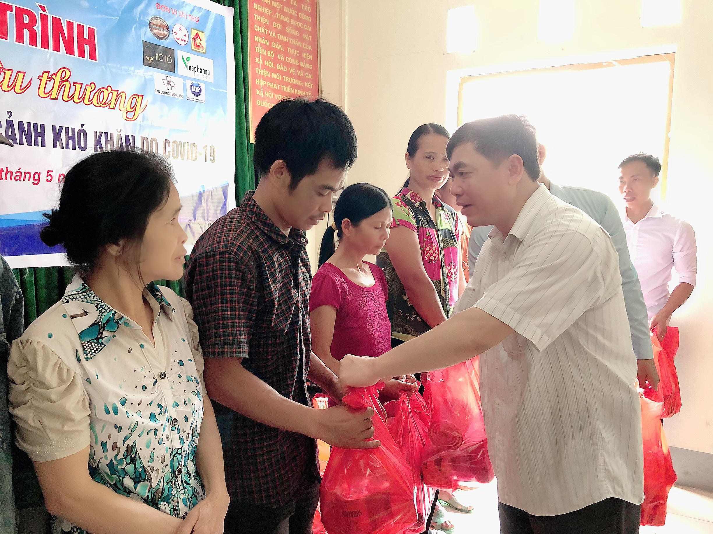 Ông Vũ Đình Tiến trao quà cho các hộ gia đình có hoàn cảnh khó khăn.