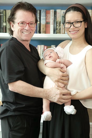 | Vợ chồng chị Na Hương hạnh phúc bên con gái. |