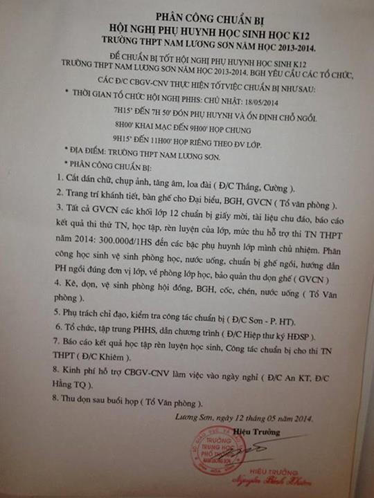 Đồng thời trường THPT này còn thu 300 nghìn đồng/học sinh để phụ vụ thi tốt nghiệp THPT năm 2014.