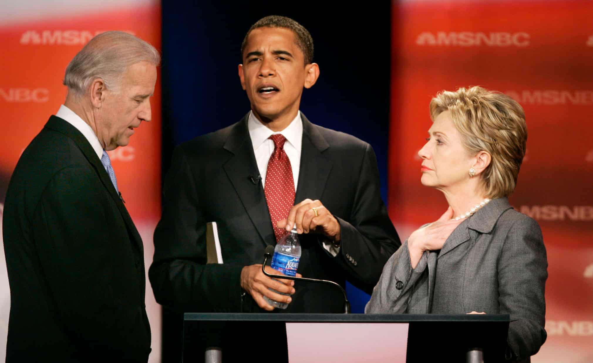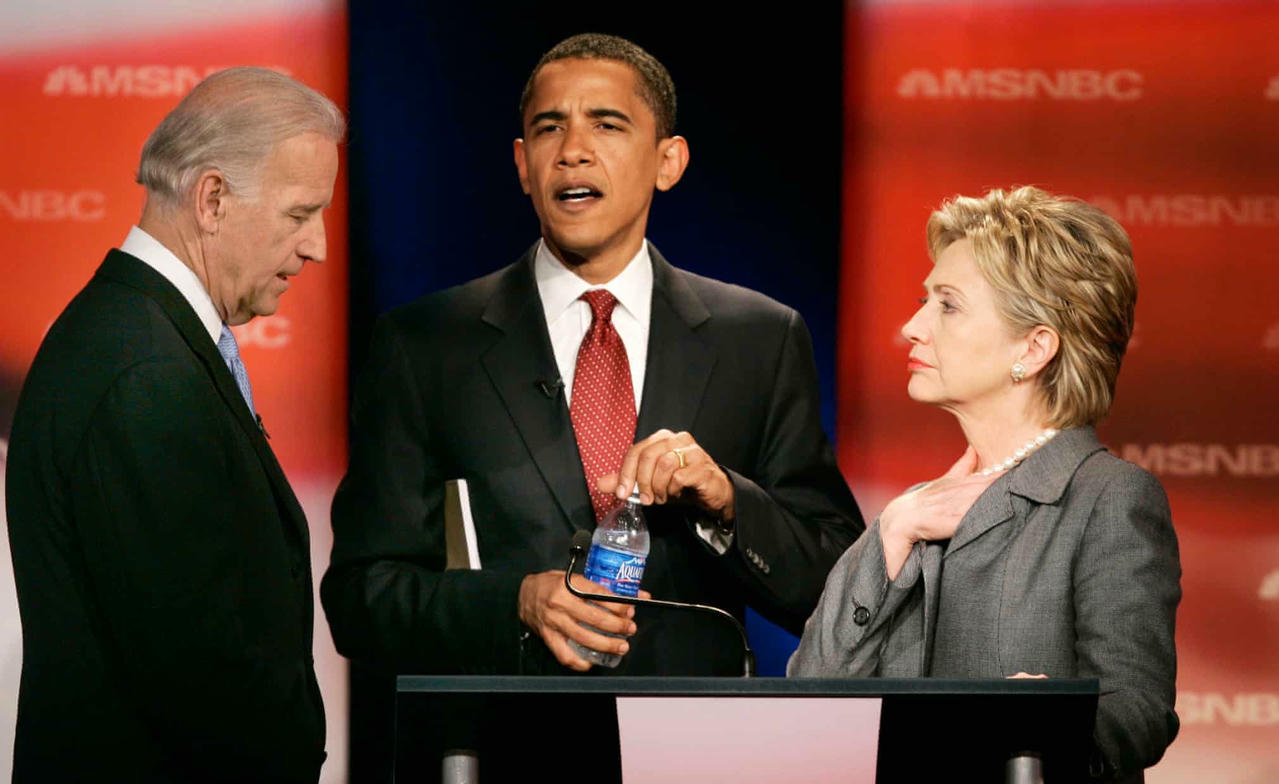 Biden với các thượng nghị sĩ Barack Obama và Hillary Rodham Clinton trước cuộc tranh luận sơ bộ của đảng Dân chủ vào ngày 26/4/2007.