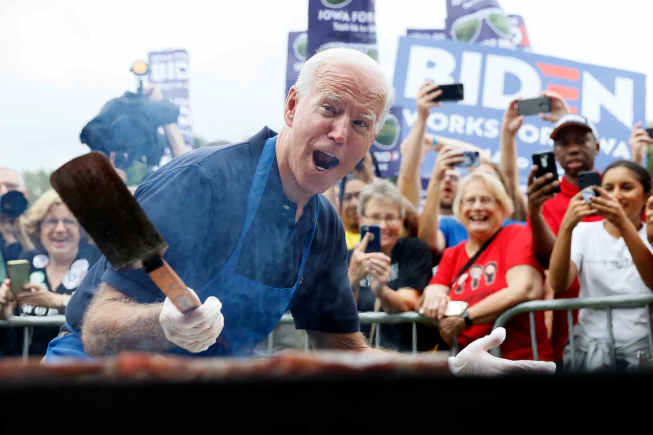 Joe Biden chế biến món thịt nướng trong bữa tiệc bít tết của Đảng Dân chủ hạt Polk ở Des Moines, Iowa, vào ngày 21/9.2019.