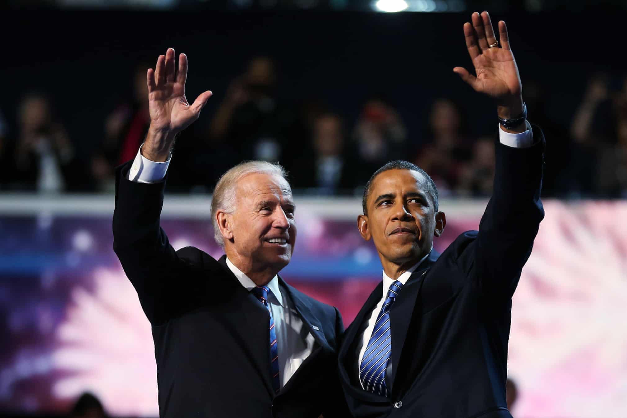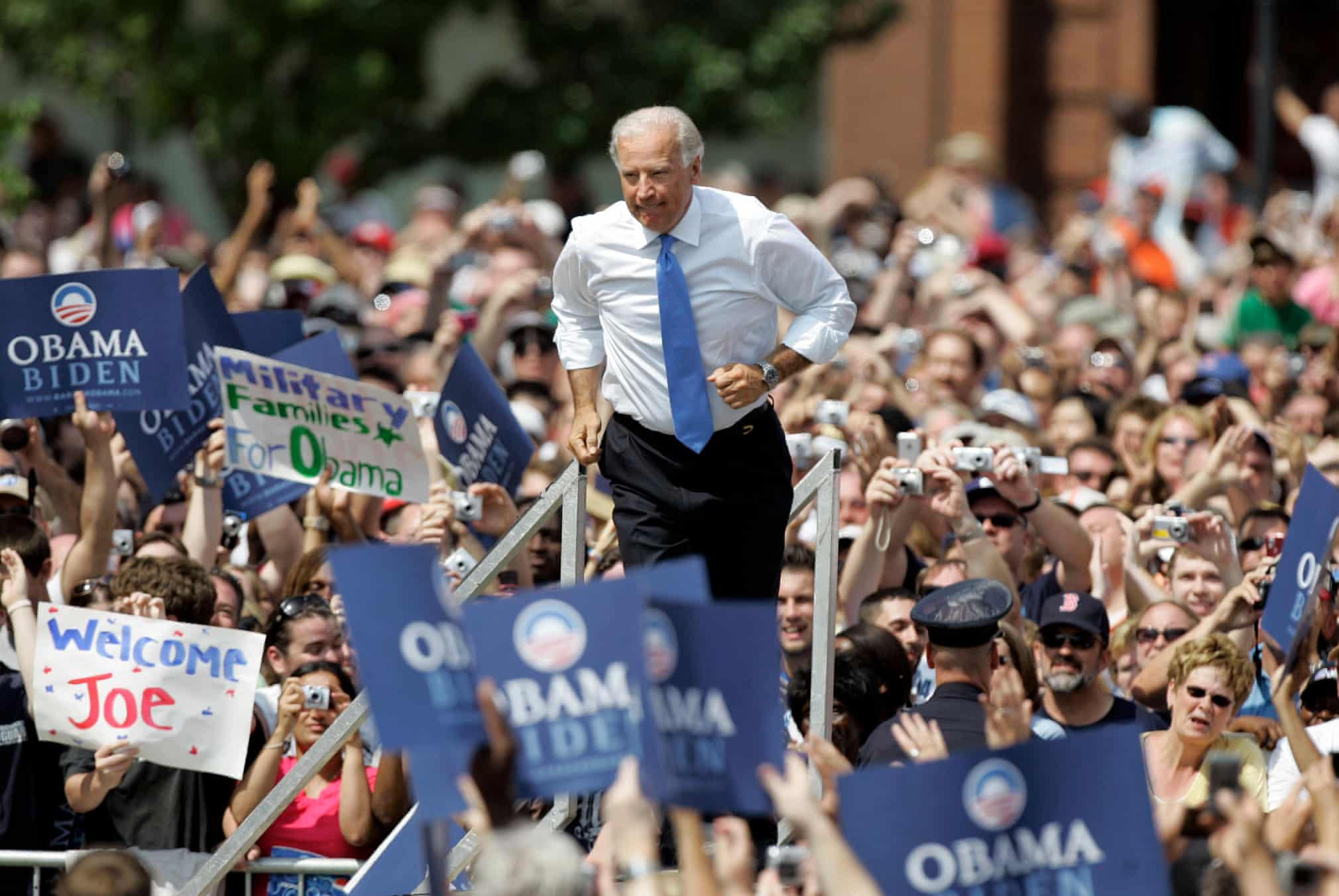 Thượng nghị sĩ Joe Biden chạy bộ để gặp Thượng nghị sĩ Barack Obama trong một sự kiện vận động cho cuộc bầu cử tổng thống năm 2008 vào ngày 23/8/2008 tại Springfield, Illinois.