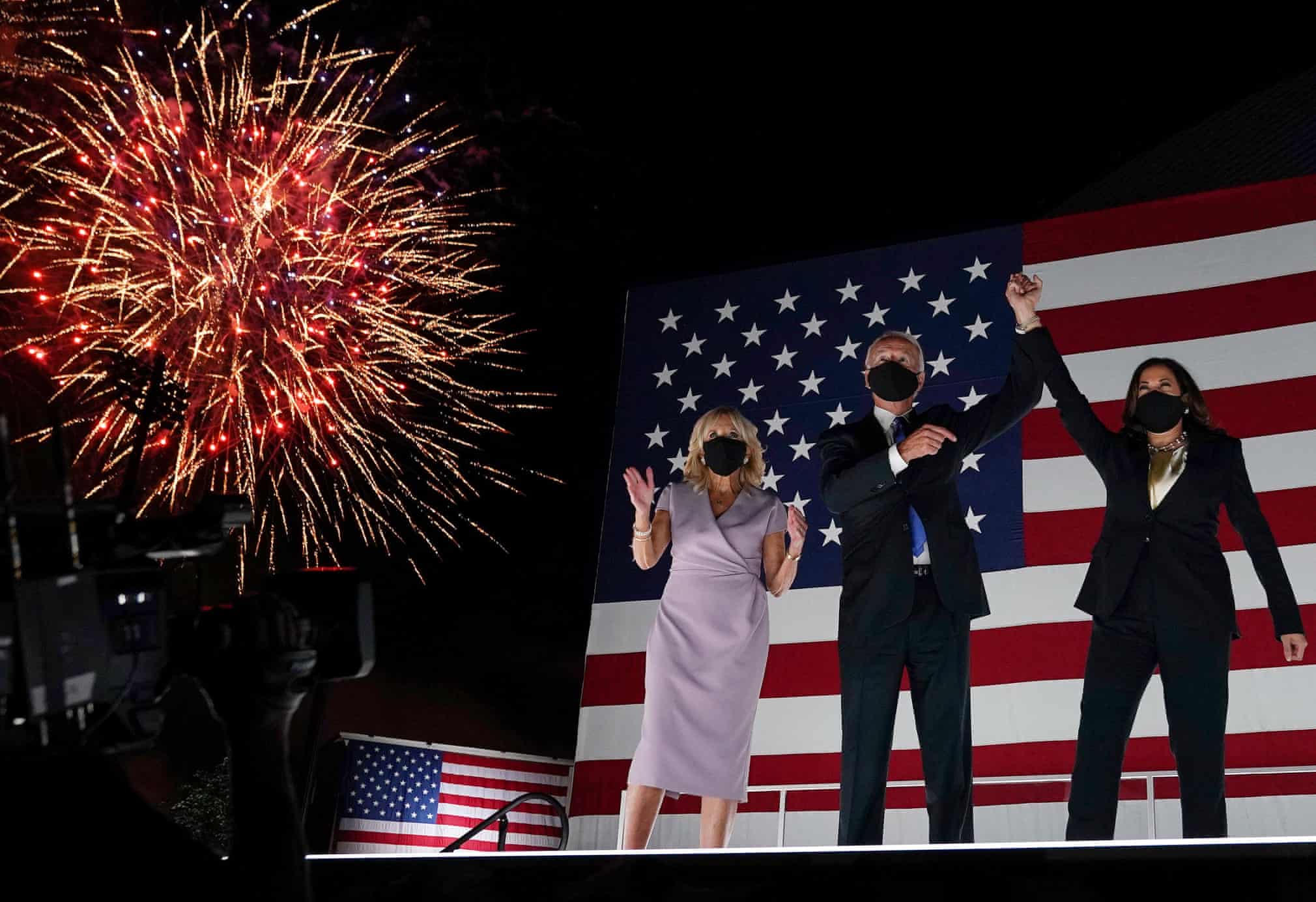 Joe Biden, Jill Biden và Kamala Harris chào những người ủng hộ sau Đại hội toàn quốc của đảng Dân chủ vào ngày 20/8/2020.