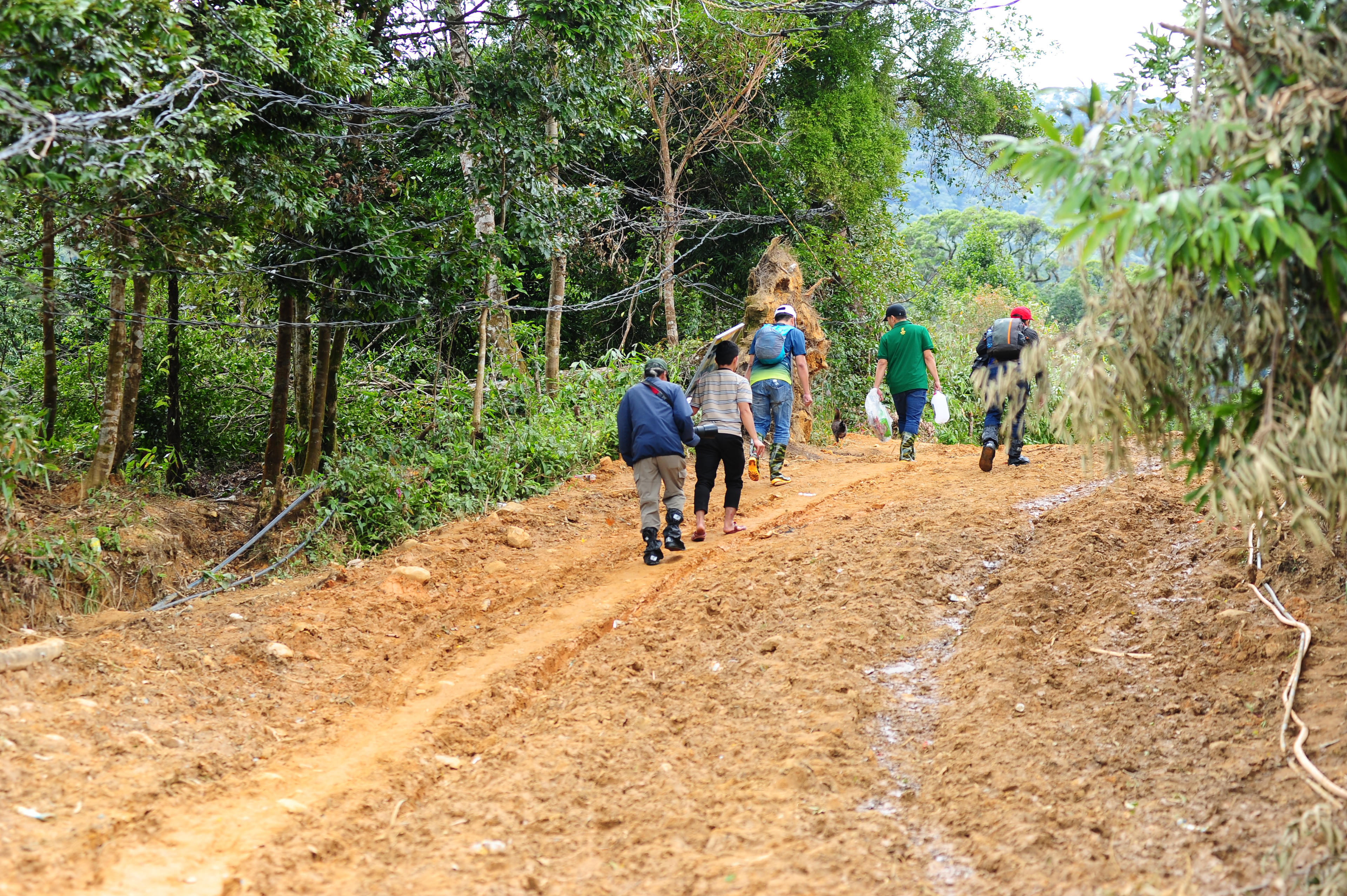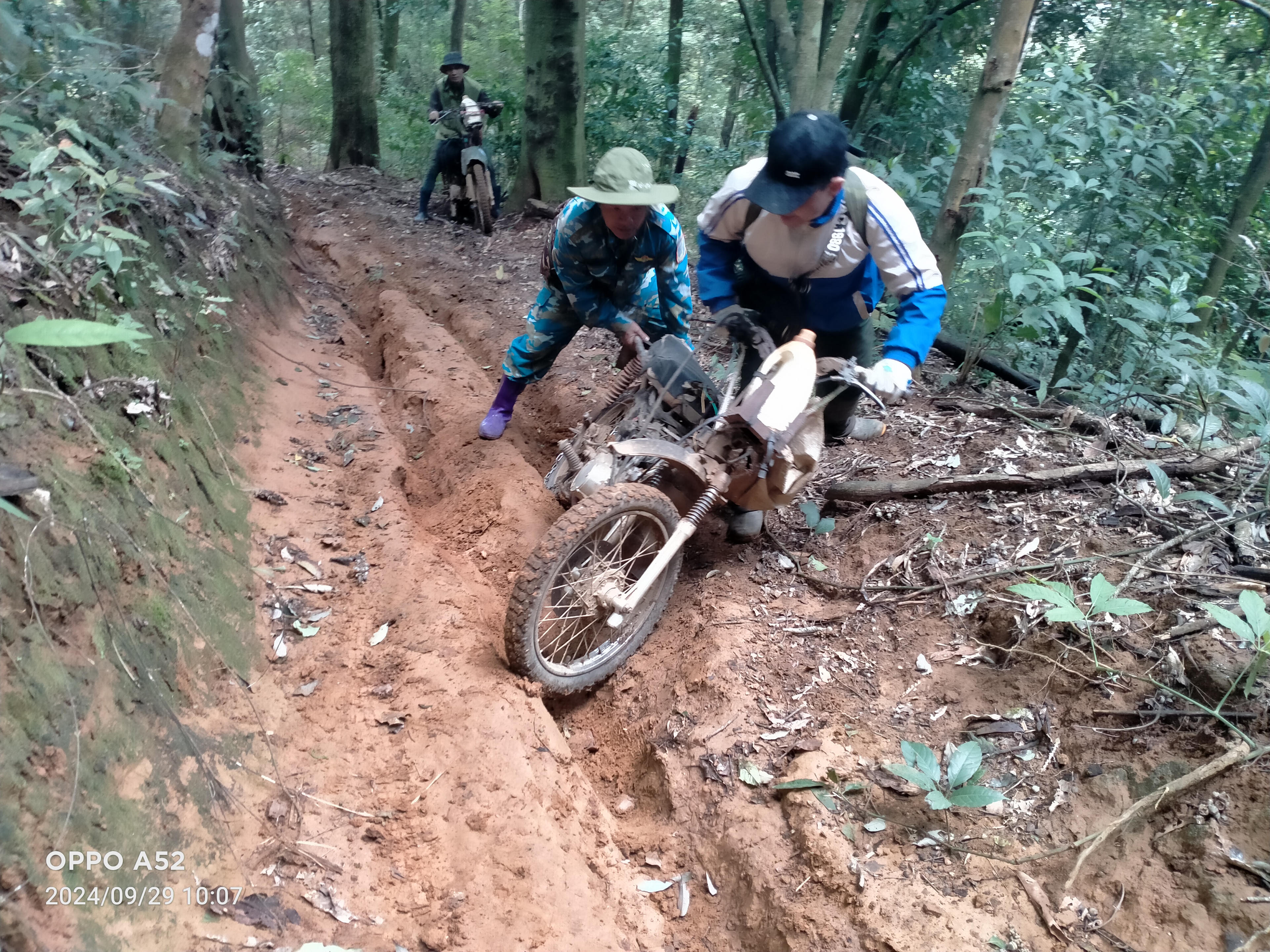 Càng đi sâu vào rừng, địa hình càng hiểm trở. Dốc nối dốc, cua chồng cua. Mồ hôi túa ra như tắm dù tiết trời vùng cao se lạnh. Có lúc thân hình rã rời, hai cánh tay tê dại, đôi chân run lên vì mệt. Ý nghĩ bỏ cuộc thoáng vụt qua trong đầu khi phải liên tục dắt xe vượt suối, đẩy xe qua những bãi đá trơn như bôi mỡ.