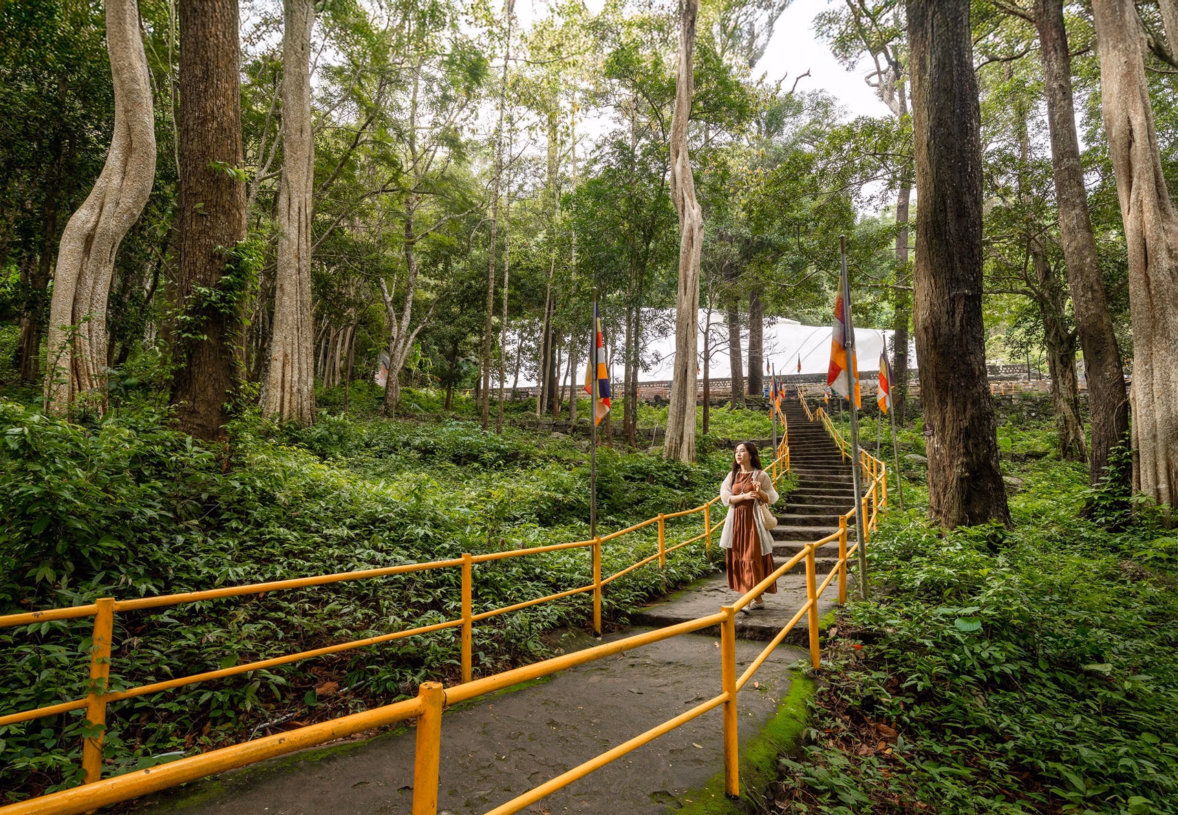 Cùng với đó, hai ngôi chùa thiêng niên đại hơn 100 năm cùng hệ sinh thái động thực vật phong phú, khu vườn thiền bên tháp chuông gió nhạc thiền lớn nhất Việt Nam, công trình đá khắc kinh Phật độc đáo… tất cả tạo nên không gian an nhiên và chữa lành hiếm có.