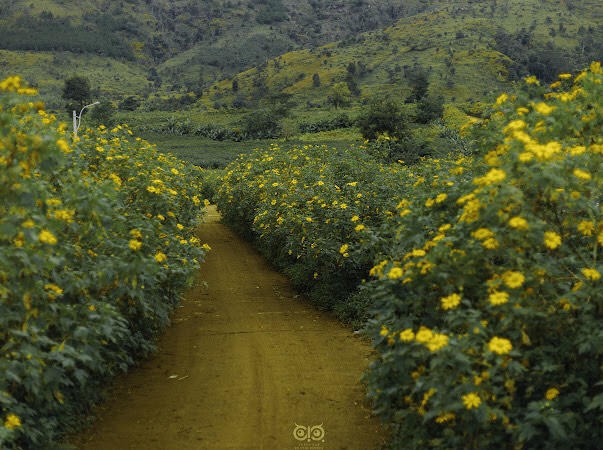 Đến với Gia Lai dịp này, đâu đâu cũng dễ dàng bắt gặp những cung đường hoa dã quỳ vàng rợp. Ảnh TN |