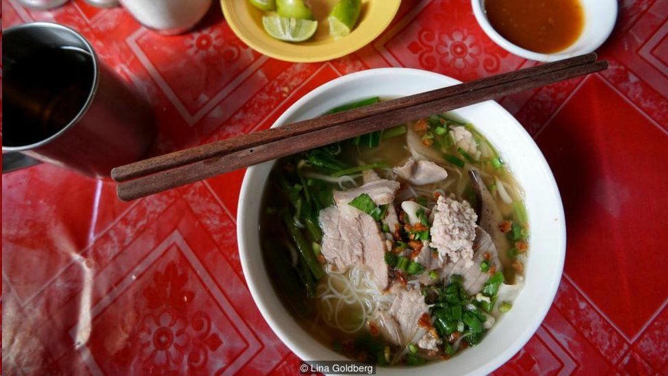 Như một sự kết hợp mạnh mẽ qua nhiều năm, Trung Quốc đã lan rộng sức ảnh hưởng của nó trải dài Campuchia và bữa sáng cũng không phải là ngoại lệ. Bữa sáng phổ biến ở Campuchia là món súp ăn liền gọi là Kuy teav, một cái tên được cho là có nguồn gốc từ chữ “kway teow” trong tiếng Hoa, hay còn là tên gọi một loại mì gạo ở Trung Quốc.