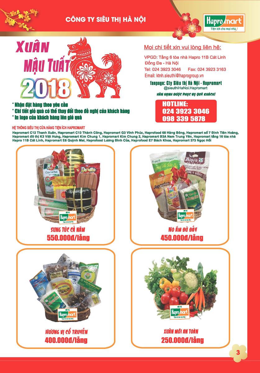 Với chủ đề “Hapro mang xuân đến mọi nhà”, hệ thống siêu thị Hapromart, Haprofood, cung cấp đầy đủ các sản phẩm phục vụ nhu cầu trong dịp Tết của khách hàng như: Giò lụa, giò xào, giò bò – sản phẩm truyền thống của Công ty Thực phẩm HN; bánh trưng và một số đặc sản vùng miền như: nấm hương khô Bắc Kạn, bưởi Diễn của Công ty Siêu thị Hà Nội…Bên cạnh đó, hệ thống siêu thị Hapromart, Haprofood nhận đặt hàng sản phẩm Giỏ quà Tết theo yêu cầu của khách hàng hoặc theo các chủ đề như “Sum vầy hạnh phúc”, “Sức khỏe bình an”, “No ấm đủ đầy”… Với tiêu chí “Đa dạng về chủng loại, hấp dẫn về giá cả và chất lượng đảm bảo” Hapromart, Haprofood hứa hẹn sẽ là điểm đến hết sức hấp dẫn dành cho người tiêu dùng thông minh.