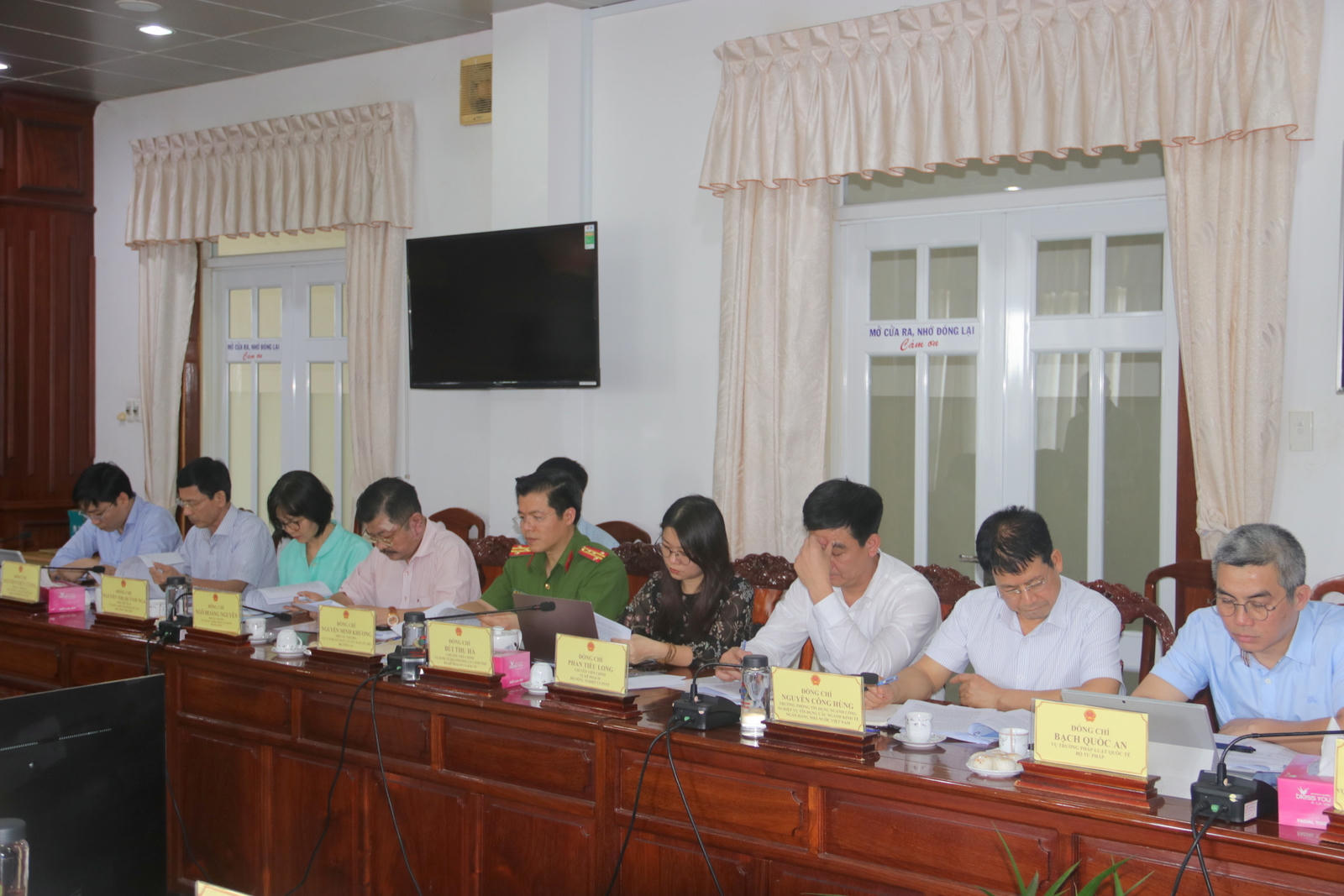 Tháp tùng Đoàn Công tác của thành viên Chính phủ có sự tham gia của đại diện nhiều Bộ, ngành như: Bộ Giao thông vận tải, Bộ Kế hoạch và Đầu tư, Bộ Công Thương, Bộ Xây dựng, Ngân hàng Nhà nước Việt Nam, Bộ NN&PTNT, Bộ Công an, Bộ Tài nguyên và Môi trường… Cùng lãnh đạo các Vụ, Cục chuyên môn thuộc Bộ Tư pháp như: Vụ Pháp luật dân sự - kinh tế, Văn phòng Bộ, Vụ Các Vấn đề chung về xây dựng pháp luật, Vụ Pháp luật quốc tế, Cục Quản lý xử lý vi phạm hành chính và Theo dõi thi hành pháp luật…