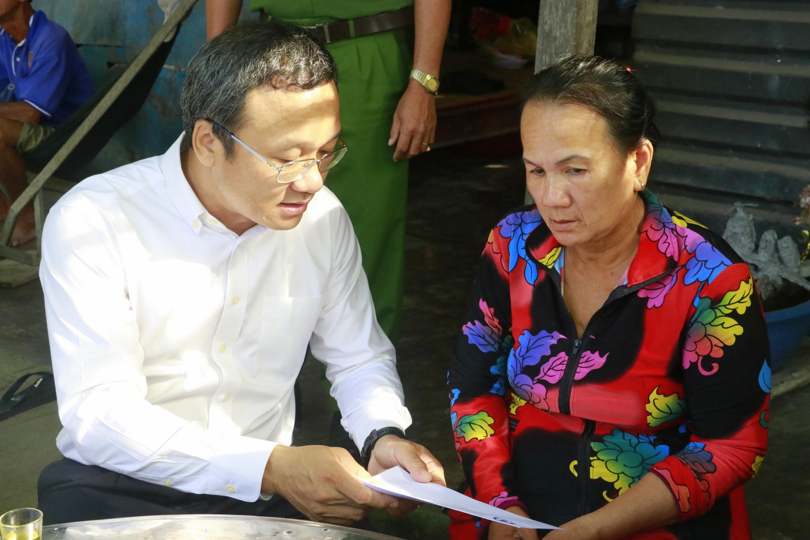 Tham gia đoàn thăm hỏi có ông Khuất Việt Hùng, Phó Chủ tịch Chuyên trách Uỷ ban ATGT Quốc gia; ông Mai Văn Tân, Giám đốc Sở GTVT, Phó Trưởng ban ATGT Hậu Giang; Đại tá Nguyễn Văn Giá, Phó Giám đốc Công an tỉnh Hậu Giang, cùng lãnh đạo các ban ngành, địa phương.