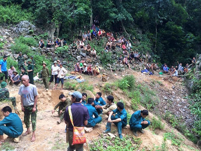 Sau đó ông Phạm Văn Dũng đã di chuyển xuống hang tìm cách cứu nạn nhân, song cũng không thấy trở ra.Sáng 6/6, một “phu vàng” khác là ông Bùi Văn Mẫn tiếp tục xuống hang mong cứu những người đang mắc kẹt, tuy nhiên mất tích luôn.