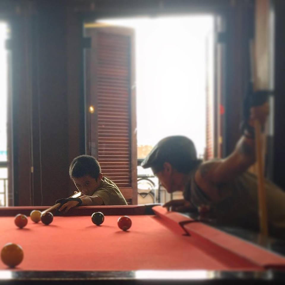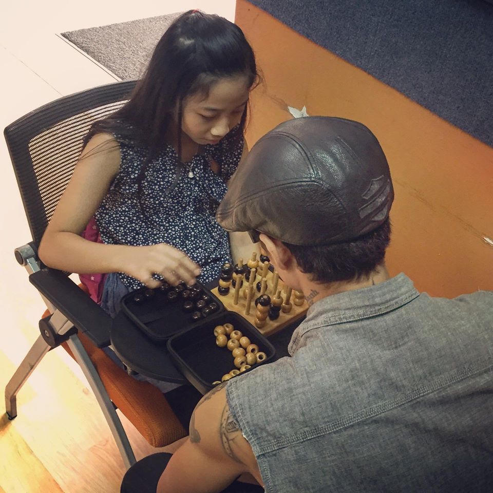 Mới đây nhất, vợ rocker đăng ảnh anh đang chơi cờ với con. Điều bất ngờ là mái tóc dài được nuôi lâu năm của Phạm Anh Khoa đã không còn, thay vào đó là mái tóc ngắn trông rất gọn gàng.
