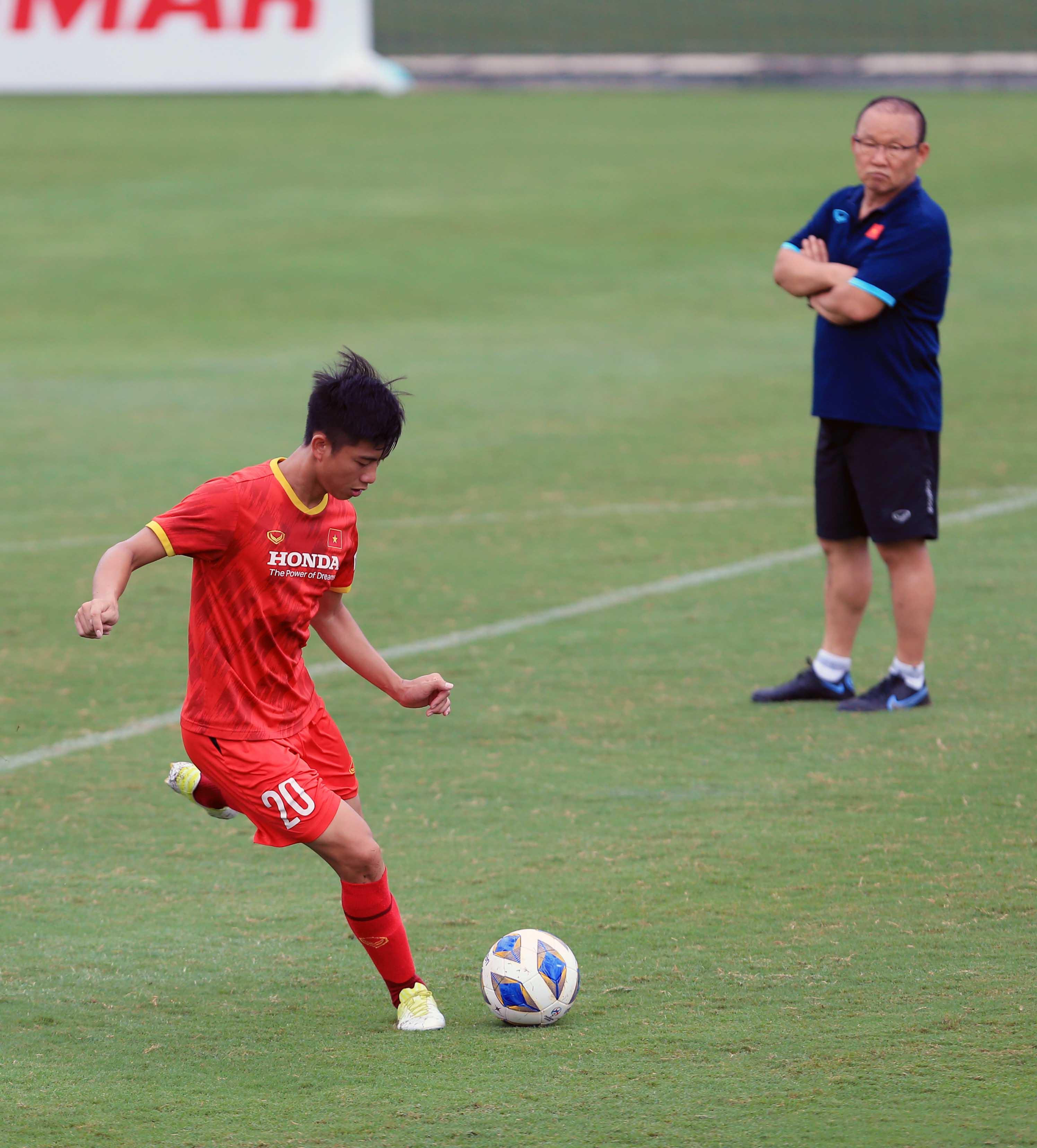 Trở lại với buổi tập chiều nay, HLV Park Hang-seo đã dành phần lớn thời lượng cho các bài củng cố về di chuyển chiến thuật và chuyển trạng thái từ tấn công sang phòng ngự.