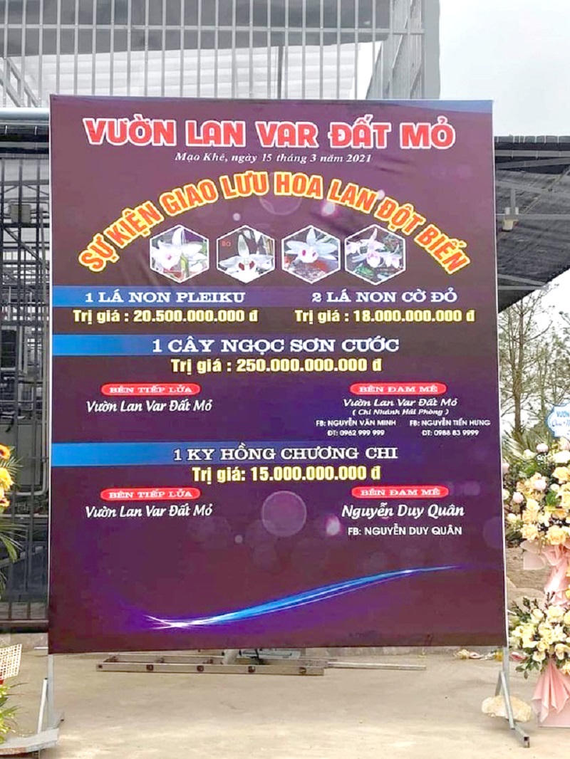 Đỉnh điểm là vào ngày 15/03, cộng đồng mạng xôn xao với thương vụ mua bán lan var Ngọc Sơn Cước trị giá 250 tỷ đồng diễn ra tại Mạo Khê, Đông Triều, Quảng Ninh. Có thể nói đây là thương vụ mua bán lan đột biến có giá cao nhất từ trước đến nay. Trên Facebook của anh Nguyễn Văn Minh, người được cho là chủ nhân mua cây lan trị giá 250 tỷ đồng đã đăng tải thông tin về việc nhận chuyển giao 3 cuộc giao dịch lớn với vườn lan var Đất Mỏ với tổng giao dịch là 288.500.000.000 đồng. Trong đó có 1 cây Ngọc Sơn Cước có giá 250 tỷ đồng, 1 lá non Pleiku giá 20,5 tỷ đồng và 2 lá non Cờ đỏ giá 18 tỷ đồng.