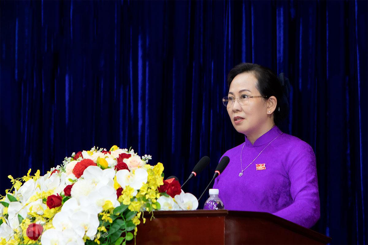 Bà Lê Thị Thủy, Bí thư Tỉnh ủy phát biểu tại kỳ họp. |